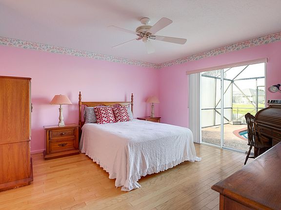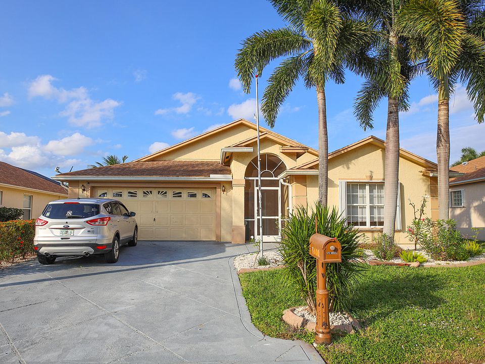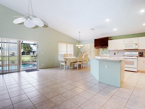 Open concept 3 beds/2 baths with SOLAR heated INGROUND POOL and water view! Hardwood floors in all bedrooms. Vaulted ceilings in principal living areas. Opportunity to bring your design ideas to life! Natural gas cooktop in kitchen. Large screened lanai with sliders to patio from living room and primary bedroom. Two car garage and full accordion shutters.