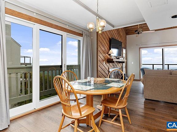 Some of the best views at Wintergreen can be enjoyed from this newly renovated Ledges Condominium. There are cathedral ceilings and large windows at the dining area to allow light and additional views throughout. The condominium is located on the top two floors of the first Ledges building and, as the end unit, has great privacy. Not only has it been renovated but the floor plan has been modified to create 3 separate sleeping areas. The new deck has been designed to maximize view. The views are of the ski area and Black Rock Mountain in the foreground, across the gorge to Crawford's Knob and into the Rockfish Valley and beyond. A floor plan showing the modifications is available on request.