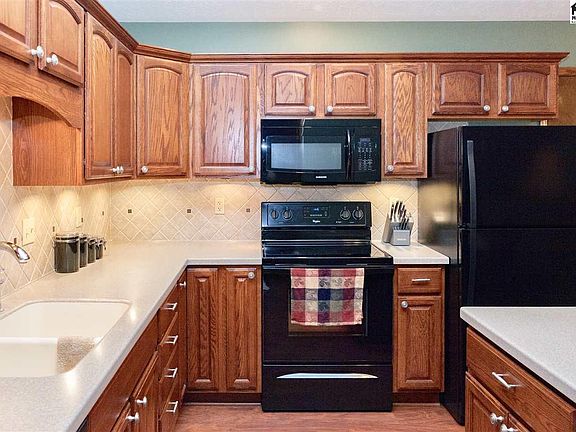 This move in ready home is located in a great neighborhood and will not last long! This home has been well taken care of with it's great floor plan and nice finishes. The living room is inviting and feels so spacious with it's cathedral ceilings and recess lightning. The kitchen is gorgeous with it's solid surface countertops, newer cabinets, beautiful tile work and nice appliances. The owner suite is unbelievably large and has patio doors that lead you on to a nice deck that overlooks the back yard. The owner suite bath features 2 seperate vanities with sinks, large tub, stand alone shower and walk-in closet. Along with the 2nd bedroom there is main floor laundry. Basement has wonderful space as well with it's nice family room, large bonus room with closet, mechanical room and large unfinished storage room that is roughed in for a bath and is ready for extra finished space. The backyard is big and come with nice wood deck and privacy fence. Owners have just added a new concrete pad and new storage she. Hot water heater was replace in 17 and the roof is a couple years old. Call to see this home today.