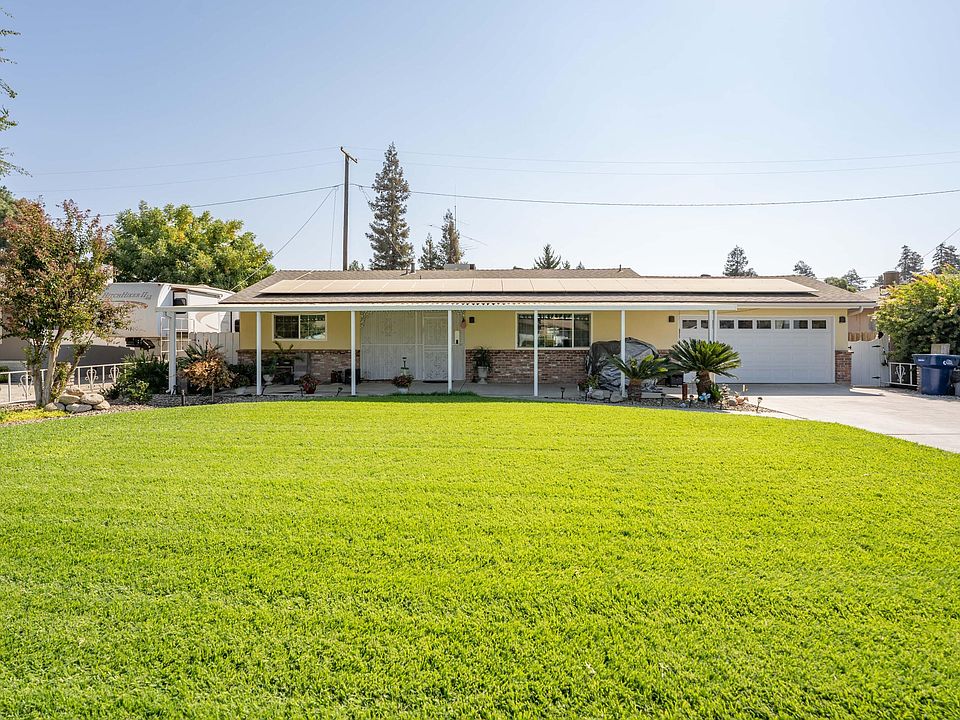 Close to all amenities! Located close to restaurants, supermarkets, gyms and any other amenities you may need is this beautifully upgraded 3 bedroom 2 bath home in established neighborhood. Large front covered patio extends across living spaces providing shade from the warm valley sun. Inside the double door entry, is a carpeted family room that leads into the open dining space and kitchen. Kitchen has stainless steel appliances and granite countertops perfect for prepping delicious meals. Guest bedrooms share a large bathroom with ample storage and granite countertops matching the kitchen. The master bedroom has an attached bath with granite counters as well as a tiled shower. The backyard has a covered patio space, concrete area and grassy space for your fur babies and kids to play. This home also comes with paid solar!