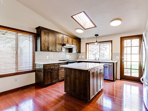 Centrally located single level home features vaulted ceilings, 4 skylights, and updated kitchen with customized cabinets, quartz countertops, and stainless appliances. New roof and windows 2013, exterior paint 2015, new HVAC and new water heater 2018. Both bathrooms were updated recently. RV parking and large backyard with fire pit and covered deck. Walking distance to riverfront trials and parks. Biking distance to Autzen Stadium and the University of Oregon.