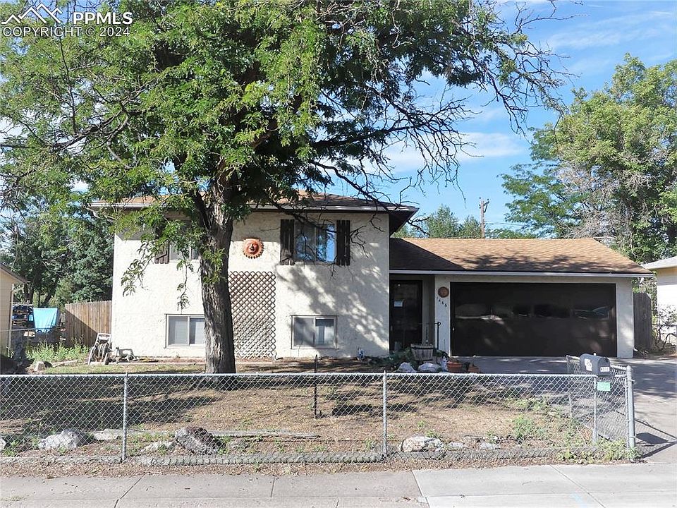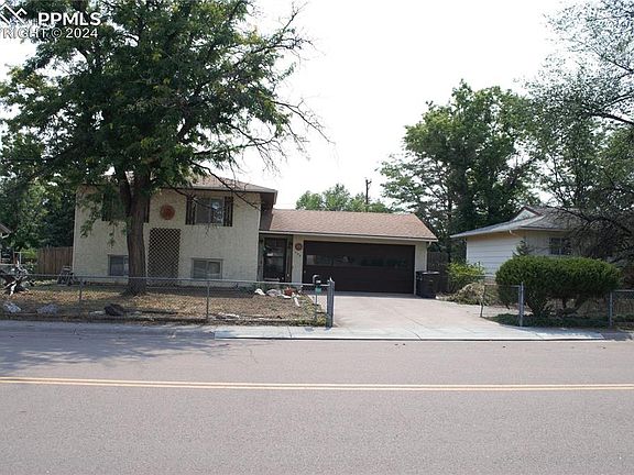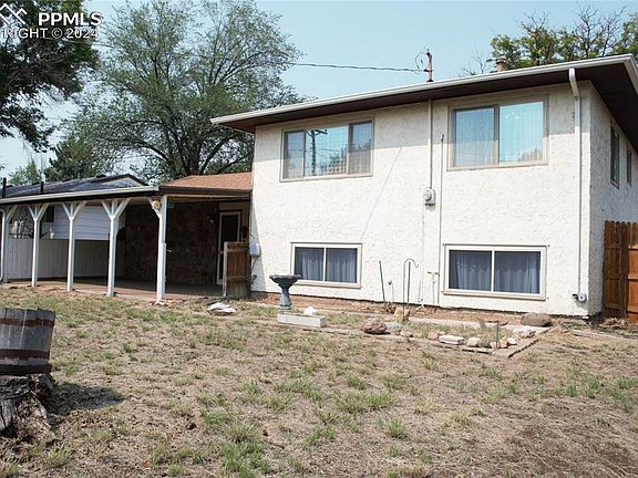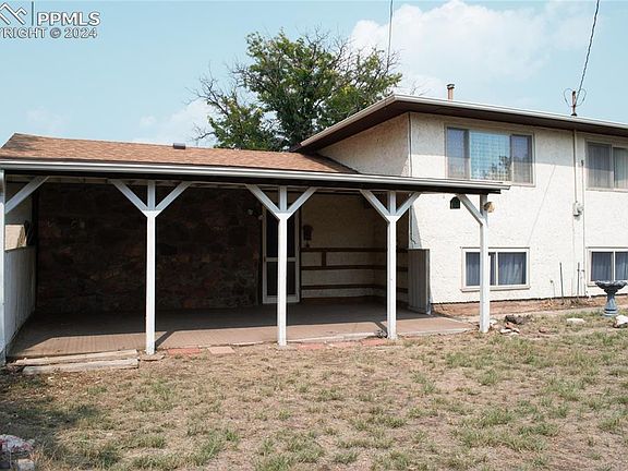 Bi-level home, located in Fountain, Colorado. This home has stucco siding with stone accents under the rear covered patio. There are 4 bedrooms (although one is quite small, and not what one would consider a bedroom), and 2 full bathrooms. The living room has new carpet and the downstairs carpet is newer, but not brand new. The main level bedrooms both have hardwood floors, and there is new vinyl in the kitchen and bathrooms. The bathrooms are typical of a home of this age, simple but ample. The German Shrunk in the living room will stay with the house. The kitchen is simple, containing only a refrigerator and stove/oven. This home also has central air. The large, fully fenced yard has two sheds in the back, one is a new tuff shed. There is an additional storage nook in the garage, as well as overhead space. There are vinyl windows with all the window coverings, blinds and curtains remaining for the future buyer.