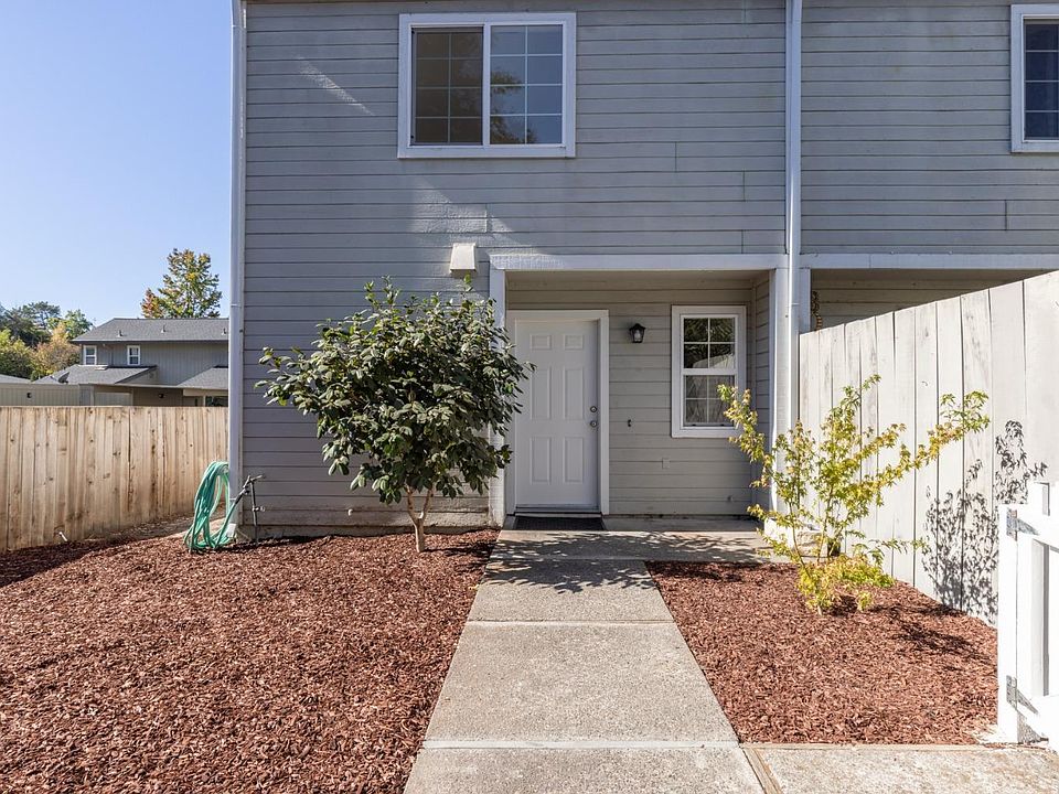 Back on the market with fresh interior paint and a new garage service door! Charming end-unit PUD, located on one of the larger lots within the complex. This two-story home features 2 bedrooms and 1.5 bathrooms, offering a comfortable and functional layout. The detached garage provides convenient direct access to the front yard, making entry and exit a breeze. Enjoy the extra space and privacy that comes with an end unit, perfect for those seeking a serene living environment. Stay cool in the Summer months with the air conditioning, or take a dip in the community pool located just across the parking lot. Plenty of room for gardening with a front, back and side yard. The prime location of this unit cannot be overstated!