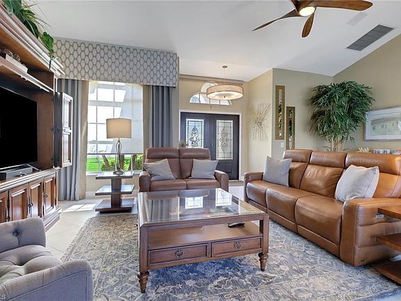 Step into an impeccably renovated and professionally designed 3-bedroom, 2-bathroom pool home, tucked away on a quiet cul-de-sac within the prestigious, gated community of Briarwood. This serene retreat is the perfect blend of sophistication and comfort just 10 minutes from Naples' white-sand beaches, world-class dining on 5th Avenue, historic Tin City, and vibrant marinas.
