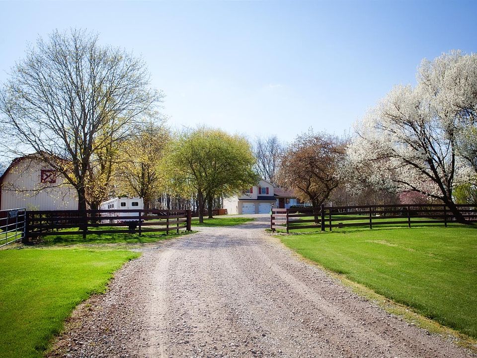 UNBELIEVABLE HORSE LOVERS DREAM BEAUTIFUL SERENE partially wooded 13+ acre RETREAT in rural Lowell, Indiana 1 mile from the Illinois line Quad level RECENTLY remodeled, FENCED PASTURE, RIDING ARENA, WITH MATURE GRAPE ARBOR near the HORSE BARN WITH 4 STALLS and OPEN LOFT JUST WAITING TO BE BUILD OUT RUSTIC outbuildings bordered by A WALNUT FOREST MOWED TRAILS. The FRONT entrance of the home offers a covered DECK with TREX PLANK for CAREFREE maintenance. Home features LIVING ROOM/FLEX, LARGE kitchen CUSTOM HICKORY CABINETS, and a STUNNING GREAT ROOM BOASTING A CUSTOM STONE ENTERTAINMENT BUILT IN WALL with CATHEDRAL CEILINGS UPPER LEVEL OFFERS 3 BEDS & 3/4 BATH. LARGE MASTER SUITE with LAUNDRY. BASEMENT LEVEL IS PARTIALLY FINISHED WITH TONS OF ROOM FOR ANYTHING REC room has a DRY BAR, 3/4 BATH and outside ACCESS where YOUR PRIVATE DECK and above ground POOL await. The high efficiency furnace is accompanied by a Kinetico water softener in a basement with lots of storage.