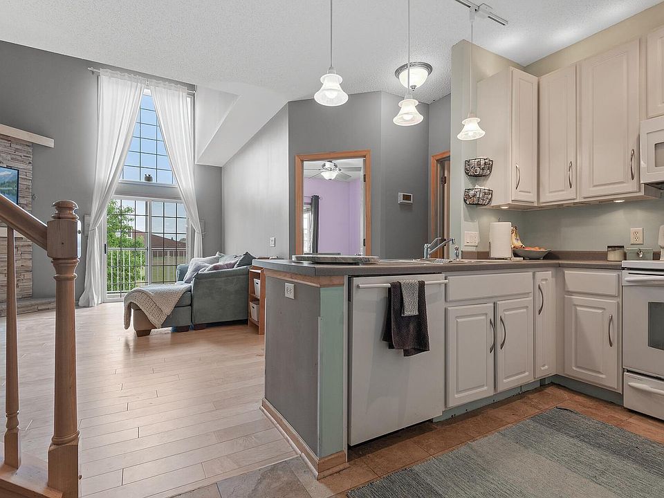 Beautiful townhome in a highly desired location in Ramsey! This 2 bedroom, 2 bathroom home features vaulted ceilings, fresh paint, new flooring, multiple living spaces & updates throughout. Walk inside to large foyer and laundry/storage room. Main level is open & spacious with a white kitchen, lots of cabinet space and a breakfast bar. Kitchen is open to the dining & living room with soaring ceilings, beautiful brick gas fireplace and a 2 story window bank that lets an abundance of natural light shine through this space. Walkout to the recently replaced deck overlooking a large greenspace and views of nature. Main level bedroom and convenient 3/4 bath. Upper level features the private master suite with a full bathroom and large walk in closet. Upper level also has a loft that overlooks the main level with a built in desk - this space could be a great office, family room, or playroom! Wonderful location just off 47, close to major roads, parks, walking paths, restaurants, retail and more! Showings are available evenings and weekends on select days. Please leave a message through the site for a quicker response. 12 mo lease minimum required HOA rules applicable to tenants, documents available when reviewing lease terms Background application required Gas and electric are tenant responsibility, Water/sewer/garbage paid by landlord No smoking or vaping, no pets