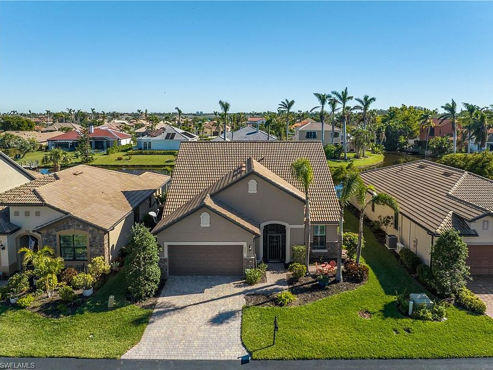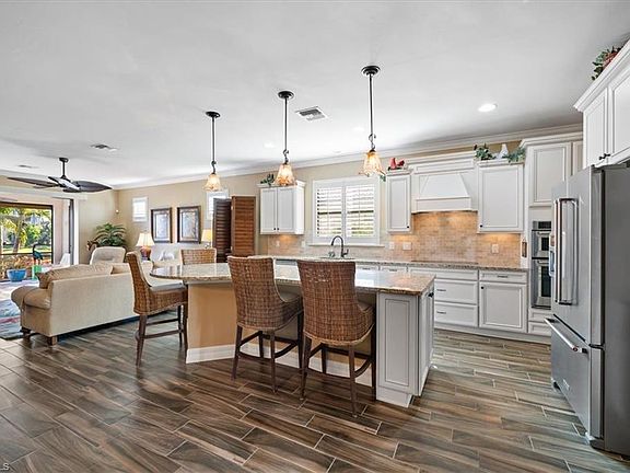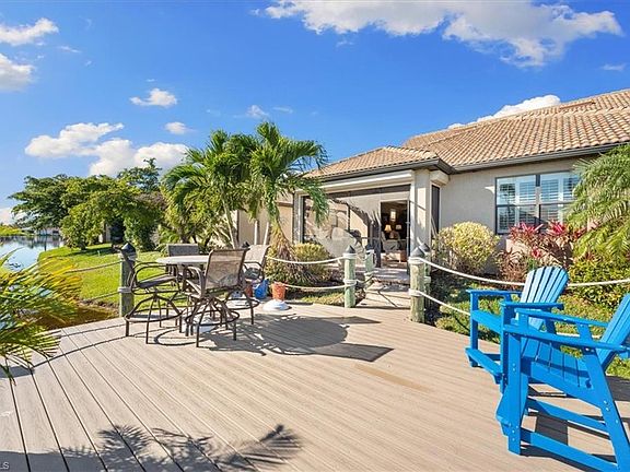 Exquisite lake front 2-story residence, built in 2015 in the highly sought after Water's Edge subdivision boasting spacious 2664 sq ft under air, 3+ bedrooms, 3 baths, a 2 car garage and a boat dock. Step out and enjoy the morning sun from your boat dock on the lake or from your comfortable screened lanai! This beautiful lakefront home boasts many upgrades and comes furnished! Upgrades include porcelain tile in the main living areas, hardwood floors in the primary bedroom, beautiful white custom doors, granite countertops, a wine bar, stainless steel appliances, an abundance of cabinets in the gourmet kitchen, impact resistent windows & doors, hurricane shutters, newer AC & water heater and a huge master ensuite with custom built walk-in closet. A 2nd floor features a bedroom with bath, a separate living room and a huge storage room - ideal for an additional family member! This waterfront community has a private marina with DIRECT GULF ACCESS, 2 community pools, tennis & pickle ball courts, a private beach & amazing sunset views of the river. LOW HOA dues! Minutes to restaurants, shopping, entertainment and to beaches. Enjoy a relaxed lifestyle! House Elevation is 8 ft!