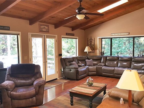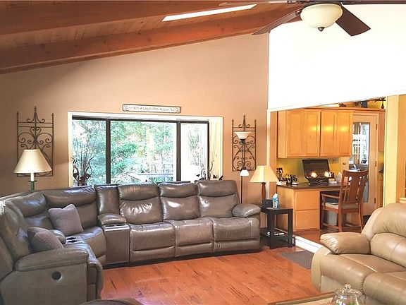 CATCH THIS DEAL!! Just appraised for over listing price in April 2019--Amazing property that offers a spacious 3 bed/3 bath home with 2 car garage; fully paid for solar installed Aug. 2018; historic 1940's feed store is now a 1200 sq.ft. barn/shop with attached carport/storage; 40x28 ft. metal building with 8' & 12' roll up doors w/power & stadium lights inside; 2-car metal carport; circle driveway and plenty of additional RV parking sitting on 1.4 usable acres!! The home has hardwood & tile floors, updated kitchen w/granite counters-butler storage & serving counters with corner wine rack, country kitchen dining, a 140 sq.ft. bonus room off the kitchen w/tile floors & lots of windows w/forest views makes a great office/hobby room or ?? Vaulted wood & beam ceilings in the living room with efficient wood stove on attractive hearth, a heat transfer system that moves the wood stove heat throughout the home, plus the central heat/air. Master suite is in its own 800 sq.ft. wing of the home and has its own entrance, gas fireplace, 2 walk-in closets, large soaking tub, separate shower, dual sinks & private water closet...this could be an amazing mother-in-law quarters or Air B & B unit!! There is a 2nd Master Suite off the main living area that also has a walk-in closet & luxurious master bath with soaking tub, separate shower & dual sinks. Don't miss the under house storage & 4th guest room! A great back deck with treed views, open back yard space and a regulation horse shoe pit!
