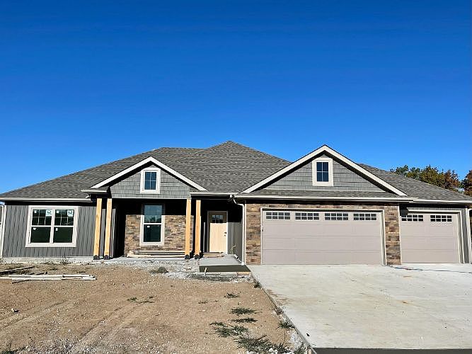 The open concept floor plan features a hidden walk-in pantry, beautiful granite countertops and tall ceilings with three large, trimmed windows. The home comes fully equipped with all stainless appliances, matching French door refrigerator. This charming exterior includes upgraded stone front porch. Home is within walking distance of Hallsville schools and has access to high-speed fiber internet. The neighborhood is selling fast. Schedule a viewing today!