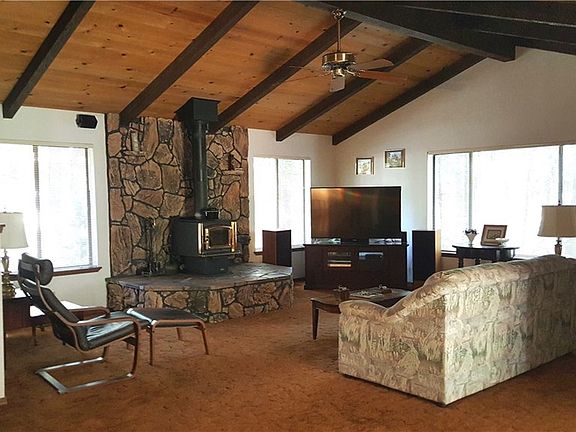 WOW--Usable 1/2 Acre and a spacious 3 bedroom plus den, 3 bath home with privacy & forested views from all the windows!! A beautiful tile entry welcomes you into the living room with rich vaulted wood & beam ceilings, wood stove on a rock hearth provides comforting warmth in the winter and the heat transfer system moves the heat efficiently throughout the home. There is also a newer heat & air unit, new 50 year roof and new composite decking front & back. Quality construction is evident with the 2x6 walls, extra insulation throughout, central vacuum system, 80 gallon water heater, built-in cabinets & book shelves in the living room with a pass-thru to the kitchen, spacious kitchen with loads of storage & counter space that opens to the adjacent dining room with a sliding glass door to the new back deck overlooking the fenced in garden area and beautiful views out to the greenbelt. There is a large Master Bedroom and bathroom with tile shower, 2 guest rooms and hall bath with tub/shower. Downstairs offers a bonus room & 1/2 bath that can be a 4th bedroom or so much more! Plus the 2 car garage with additional shop space. This home sits far back from the street on a full 1/2 acre tucked up against the greenbelt with lots of forested trails for hiking and exploring! It is also part of the POA which offers a heated swimming pool, tennis courts, children's playground, meeting rooms, clubhouse w/banquet facilities, bar & lounge and lots of community events year round!