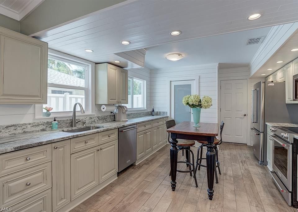 Rarely available maintenance free detached villa in Millpond, a quaint subdivision located inside one of Fort Myers premier communities of Gulf Harbour. Move right into your completely remodeled home done to a designer's touch. Gorgeous kitchen is open with ample room featuring brand new (2019) Kitchen Aid appliances, wood cabinets and leather granite counters. Classic craftsmanship is evident in the extensive wood work throughout including tongue and groove ceilings, crown moulding, and ship-lap walls. Other updates include 3 year old roof and paver driveway with extended pavers, freshly painted interior, updated interior lights and doors, windows, and wood plank tile throughout. World class amenities available with optional club membership. Don't miss your opportunity to own this stunning home you can move right into.
