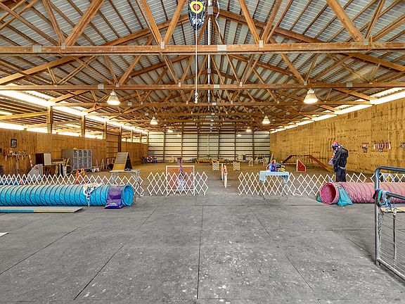 Fantastic 20.37 acres with same owner for 25 years ! Currently used for Dog agility training. Indoor riding arena also for horses. 70x120 w/2 additional 20x120 connecting sheds & 14ft doors. 48x48 Barn & 2 lean to's.All fenced & cross fenced with many separate pastures.Forest & timber.2 wells, Spring & Cistern for watering livestock.New well 6/13 for Barns 35GPM. Low taxes due to Farmland tax deferral-buyer to do their due diligence.