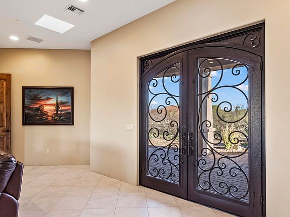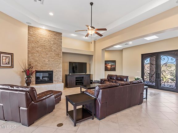 Welcome to this stunning luxury custom estate situated on a spacious 1.12-acre lot with a single-story design that offers breathtaking views. The interior of this magnificent home features exquisite details and luxurious finishes throughout. The spacious living room boasts soaring ceilings, an elegant fireplace & expansive windows that provide an abundance of natural light. The adjacent gourmet kitchen is a chef's dream with high-end appliances, custom cabinetry & a large seating bar perfect for entertaining guests. The home's master suite is a true sanctuary with a spa-like bathroom, snail travertine shower, dual vanities, and a massive walk-in closet. Three additional bedrooms that offer ample space for family or guests. Arrange your private showing appointment now! Step outside to the beautifully landscaped backyard, which is perfect for outdoor living & entertaining. The expansive 1100+ sqft covered patio provides ample space for al fresco dining, while the view fencing is perfect for enjoying the Southern Arizona sunshine and mild evenings. This luxury custom estate truly has