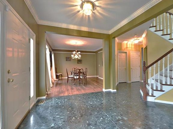 This large 2-story executive home includes 4 large bedrooms along with 3 full & 2 half baths! The center hall entry welcomes you with lustrous marble flooring & T-staircase. Gorgeous hardwood flooring throughout the formal living & dining rooms & 2-story great room w/circle-top palladian windows & a toasty marble surround fireplace. The chef in you will delight in the bright & inviting eat-in kitchen boasting ample 42in custom cabinetry, granite counters, stone tile backsplash, stainless appliances, center island & adjacent breakfast room w/bay-set French walk-out to the huge multi-level deck & level yard backing to the 16th hole of the golf course. Convenient main floor laundry & powder room. Luxurious master suite w/tall cathedral ceiling, his & hers walk-in closets & private full bath w/double vanity, garden tub & walk-in shower. Expansive finished walk-out LL adds a family room, 2nd fireplace, wetbar, den, half bath & rec area. Magnificent outdoor lighting & oversized 2-car garage!