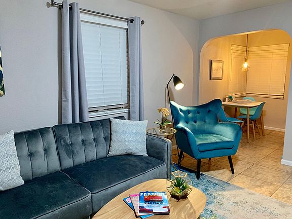 This Mid Century garden apartment is near downtown & only 1.3 miles from Roosevelt Row, and 1.5 Miles from the Phoenix Convention Center. Situated in a one story complex with many colorful Murals by local artist Bac Pac. The comfortable courtyard has 2 sets of patio tables and chairs for resident use. Once inside this 1 bedroom, 1 bath apt, you will find tile floors and white wood blinds throughout the well lit apartment. The updated bathroom has a brand new Ceramic Tile shower stall complete with new glass doors. The Kitchen is fully equipped has a new counter top, sink and Faucet. There is a fridge, Stove, and a built-in Microwave over the stove. (This gives you more counter space too!) The living room is light and bright. The ample bedroom has a nice size closet. An added bonus is a totally private patio/yard that you can access from the kitchen, or from your private gate in the parking lot, right next to your Assigned parking spot. There is also ample free street parking all around. The Brand new Central AC/ Heat unit will keep you cool! No rent increase for over a year and a half!! Deposit includes Cleaning deposit and will be returned if left in like condition. Break the agreement with 30 or more days notice! Termination at the end of the following month. No lease breakage penalties. There is a five day grace period before payments are considered late. I do not tolerate late payments, after 3 late payments, agreement will be canceled with 30 days notice. Late fees are as follows: Day 6 late fee is $60 and add $10 a day after that till paid in full. If you send an application please send a note so that I can respond to you. You can also call or text me.