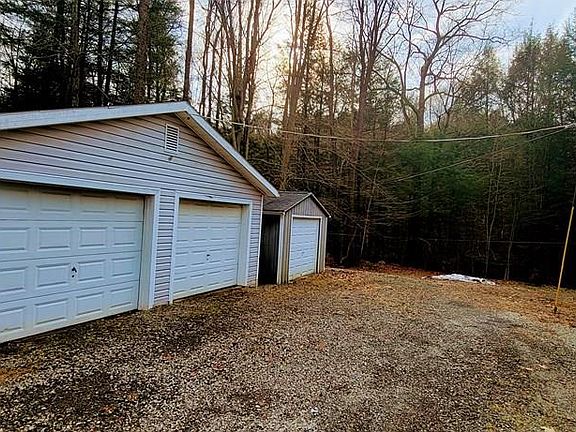This sweet home is situated on a little under 2 acres and surrounded by trees offering plenty of outdoor space and privacy! It is a 3 bedroom 2 bath house with an office/den and ample storage space throughout. There is a full finished basement with a special made bar and a bonus room which was being used for storing hunting gear. Outside there is a large covered porch to greet you and a deck off the back of the house along with a detached 2 car garage and a shed. Entertain guests out at the fire pit and pavilion which was newly built in 2019. Many many things to enjoy here!
