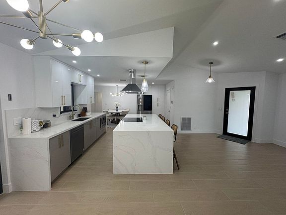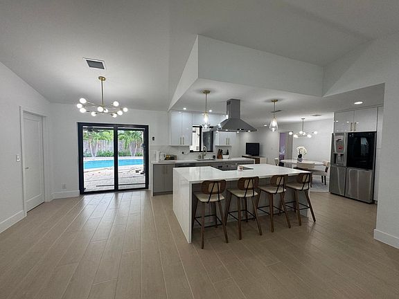 This stunning, completely renovated home boasts a central kitchen that opens up to both the family and living rooms, creating a spacious, open-concept layout that's perfect for entertaining. The large backyard features a beautiful pool, ideal for hosting guests or providing a safe, fun space for children to play. Additional upgrades include brand-new hurricane impact doors and windows, providing peace of mind and enhanced energy efficiency. This home combines modern design with practical features, making it a perfect blend of style and functionality. Plus, it's located in a highly desirable area with access to top-rated, grade-A schools, making it an ideal choice for families.