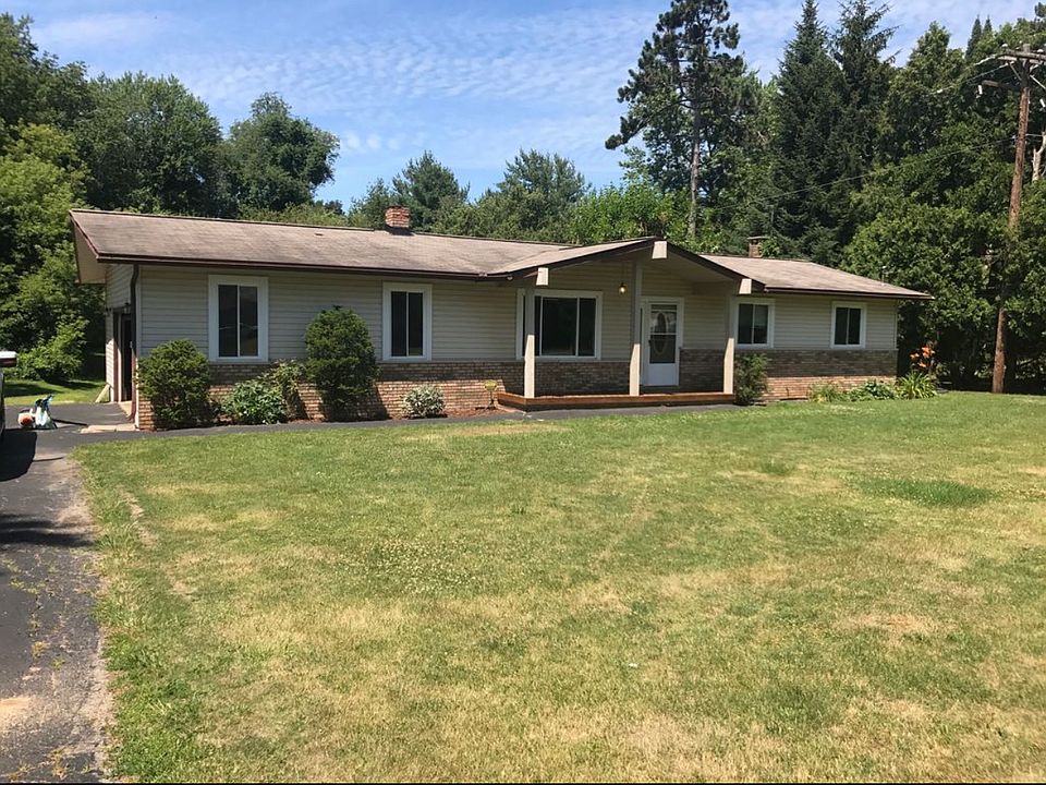 3bed 2 bath 1 acre lot with walkout basement. 2 1/2 car garage and large shed in backyard. Basement with fireplace, bar , pool table and full bath.