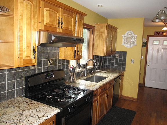 Looking for country living you found it.Charming 2 bedroom 2 full bath ranch located on a quiet peaceful street.Ceiling fans and Hardwood floors throughout.Eat in kitchen with granite counters,nook area,and appliances included.Large dining room and living room with woodburning stove to keep warm and cozy on those winter nights.(seasoned firewood included).Master bedroom with master bath.2nd bedroom with sliders out to back deck.Enjoy morning coffee or just relax on the beautiful covered side deck or relax on the rear deck with above ground pool.Car enthusiast,contractors,or hobbyists will enjoy the private fenced in backyard with an oversized 2 car garage with a 16x16 2 story barn style attachment to the back.Huge attic with potential to be finished for added square footage.