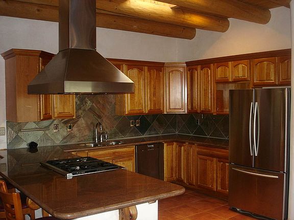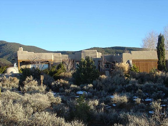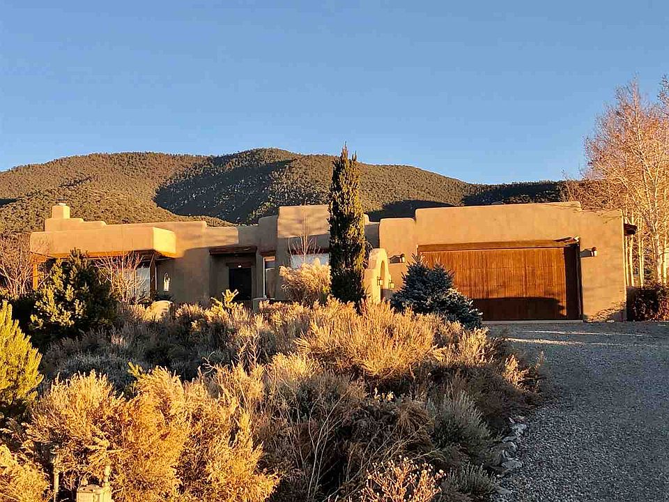 A beautiful adobe house featuring three bedrooms, two bathroom, great room with high ceilings, eating area, oversized laundry room and attached two car garage with shelves and cabinets. This house is spread out over 2,360 square feet with a very large feeling. Enjoy the vigas and tongue and groove throughout the entire house. The landscaping in this yard is truly amazing with an abundance of trees and shrubs. The house has a commercial grade irrigation system that only needs servicing twice an year. This house enjoys 360 degree views. The views of Taos Mountain are amazing. Sit in the front yard and enjoy the superb Taos sunsets or just gaze up at the millions of stars. As you drive up the driveway the nine trees on the right are located on the adjacent lot. The woodpile and flagstone on right is also on the adjacent lot but will be moved to this property.