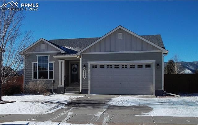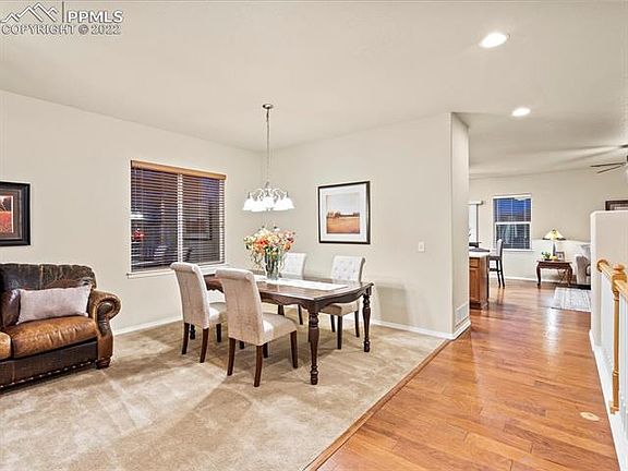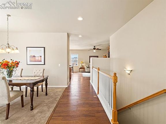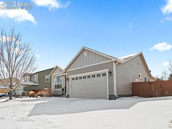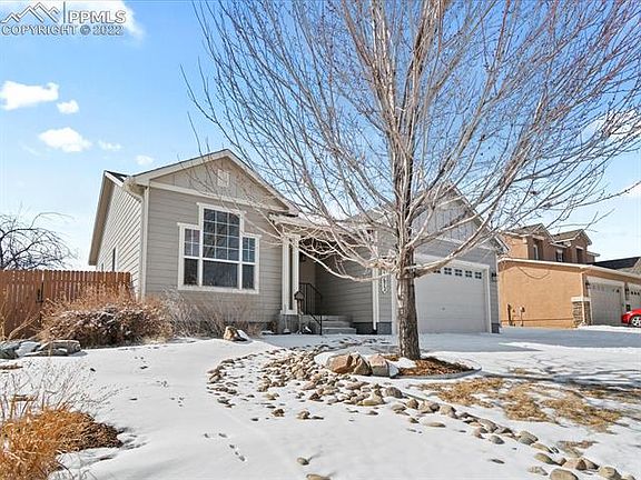 Gorgeous ranch home in Struthers Ranch with backyard views of Pikes Peak. The entry way and main floor boasts a large open dining room, engineered hardwood floors, and an open kitchen that flows into the living room. This kitchen is filled with beautiful cabinetry, corian counters, new stainless-steel appliances, a large island with bar seating, pantry, and small office nook. Enjoy the mountain views from your kitchen, or your well landscaped backyard patio. The kitchen opens into the living room that features a gas fireplace and entertainment center. Main floor also features tall ceilings, a large master bedroom with attached 5-piece bath, and two additional bedrooms with a full bathroom. Downstairs hosts two large bedrooms, another family room, 3/4 bathroom with double vanity, and tons of storage. This home has a new AC unit, high efficiency furnace, and water heater in the last three years. This home is in great condition, well cleaned, well maintained, and truly move-in ready!