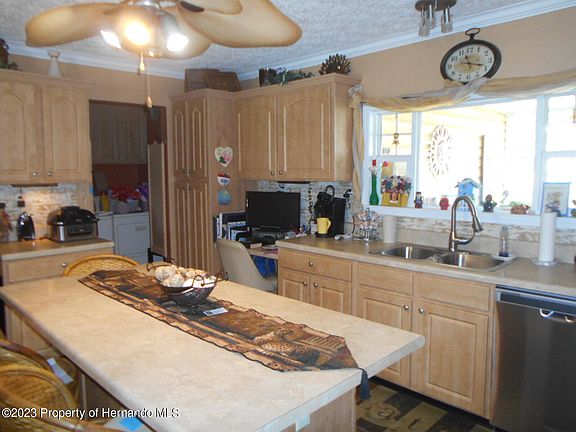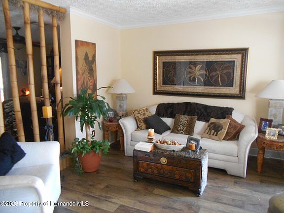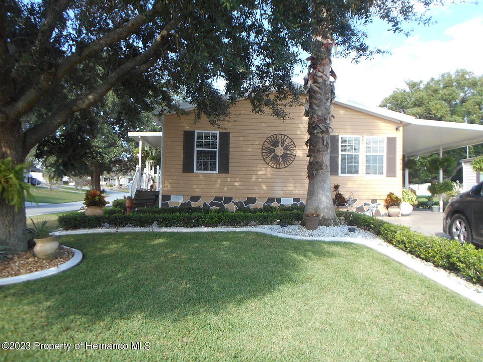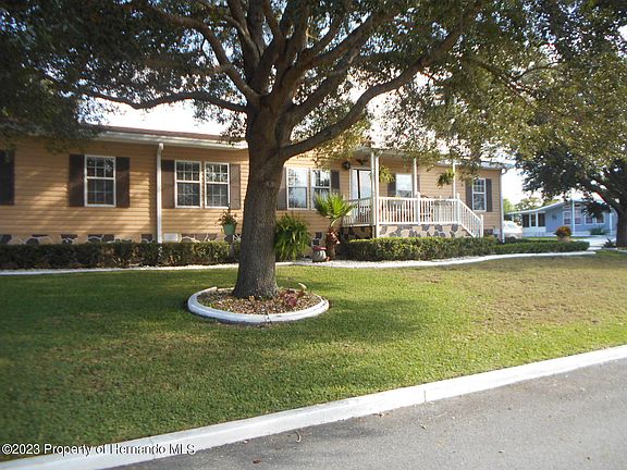 Welcome home friends! Look at this beauty located in beautiful Brookridge 3/2/4 on a corner lot, split plan and very much a open floor plan with texture ceilings , this home has crown molding to add that upgrade touch, wonderful kitchen 3 large bedrooms dinnning room , living room and a den laminated floors throughout home, only one owner , large screen porch and a front porch there are so many upgrades you have to see this home !! you cant even begin to build a new one for this price come and enjoy the florida kiving in a 55+ coumminty where you own your own land for $48.00