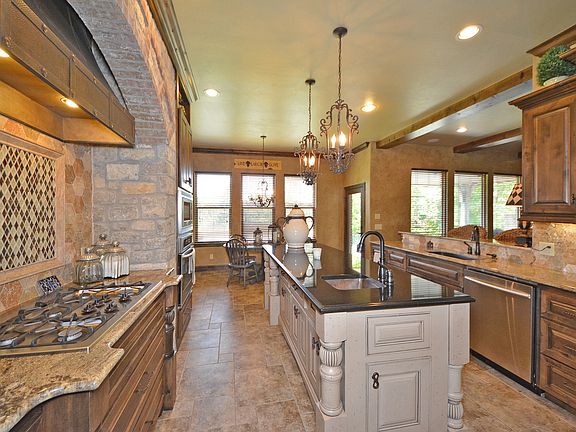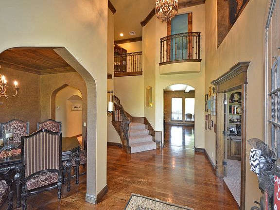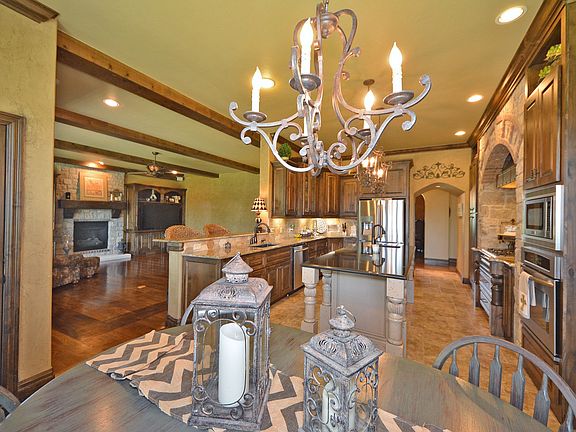 This former Parade show home is simply amazing!! Huge wooded back yard with outdoor fireplace and great space for entertaining! Hard to find custom trim work & stunning detail throughout!! The large gourmet kitchen opens to large family room making it ideal for entertaining. Handsome hardwood floors, great study with built ins & wet bar! Huge isolated master bedroom that features a large walk-in closet, large shower with two shower heads & private patio access. Game-room upstairs with a balcony to enjoy those gorgeous Oklahoma sunsets & rolling tree top view!! 3 nice size bedrooms, all with direct access to a bathroom. Bonus space for a potential media room. Community pool & park area for the kids. Easy access to I-35 ideal for any commute!!