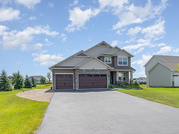 Experience luxury living in this stunning custom-built 2018 Benzinger Homes gem, offering exceptional upgrades and thoughtful design throughout. Spacious & Refined Living 5 bedrooms, 4 baths over 3,000 sq ft, ideal for growing families or hosting guests. Main level showcases an open-concept layout with a welcoming living room anchored by a gas fireplace, flowing into a gourmet kitchen. Kitchen highlights include granite countertops, a large center island, a KitchenAid dishwasher, tile backsplash, a spacious pantry, and custom cabinets. A dedicated home office/den and a convenient half-bath complete this floor. Elegant Upper-Level Luxurious primary suite with dual vanities, private water closet, and walk-in tiled shower with dual heads, plus a large walk-in closet. Three additional generous bedrooms and a shared main bath featuring dual sinks. Added the convenience of a laundry room with sink and cabinetry. Entertaining Lower Level. Finished in 2024 with a family room, 5th bedroom, full bath, and second laundry area. Fully fenced corner lot 0.35 acres with mature pine trees, garden beds, front porch, deck, and patio for outdoor enjoyment. Nestled in the Crimson Ponds West subdivision of Otsego, this home offers proximity to parks, shopping, restaurants, and easy access to schools. Fresh interior paint and touch-ups throughout 2025 ensure move-in readiness. Book A showing and check it out today.