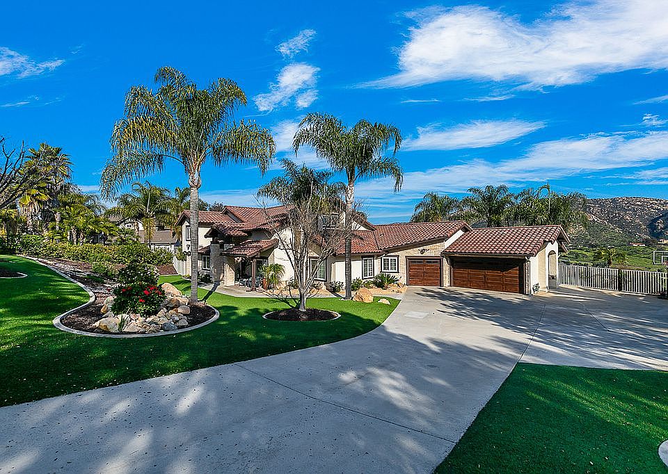 This exquisite upgraded Blossom Valley view home sits on 2-acres with over $100K in recent upgrades! Including New roof, exterior and interior paint including gorgeous custom stone work! Home theater and WiFi wiring, yard landscape up-lighting, a beautifully reclaimed wood fireplace mantel, master walk-in closet with a fireplace! Thermador appliances in the gourmet kitchen, hardwood throughout and plantation shutters. Enjoy entertaining with the award winning infinity edge pool and breathtaking views! The master retreat has spared no details with its beautiful new custom stonework and walk-in custom closet for her with a fireplace! An additional walk-in closet for him with cedar lining. You'll feel like you're at the spa when you're in your master bathroom with the large shower offering 3 shower heads, fireplace, built-in TV, heated towel racks, his and her sinks and a private Toto Neorest Toilet. The Gourmet Kitchen has top of the line Thermador appliances, beautiful finishes and has views out to the mountains. The granite counters and oil rubbed bronze faucets have been installed in all three bathrooms and the kitchen. A Lifesource home water filtration system has been installed in the home so you can drink from any faucet. The three car garage comes equipped with epoxy floors, built in garage cabinets and work bench. Also included are 2 Rinnai tankless water heaters, 2 Lennox air conditioners, dual pane windows and doors, and a camera home security system. No expense has been spared on the yard! Enter through a power gate, fully fenced yard, beautifully landscaped with sculptured artificial including up lighting to showcase the gorgeous landscape ans well as car stopping meteor lights that hang from the trees as you pull into your own private drive. The stunning award winning vanishing edge pool and spa designed and built by world renowned designer Skip Phillips is sure to be a hit with San Diego's beautiful weather!