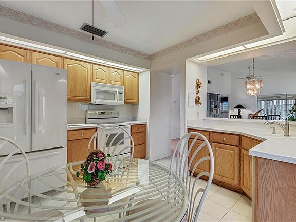 Private location with beautiful side yard from your lanai, solid surface counters in the kitchen with wood cabinets, large pantry, eat in kitchen and breakfast bar. Newer front load washer and dryer. Wood laminate flooring in main living areas, tile in the kitchen and sunroom. New roof, beautiful new paver driveway and sidewalk to front door. 2 car attached garage. Enjoy single family living at an affordable price. 186 slip deep water Marina with slips available for lease or purchase. Some amenities herein available but not offered. Living area sq. ft. per developer floor plan.