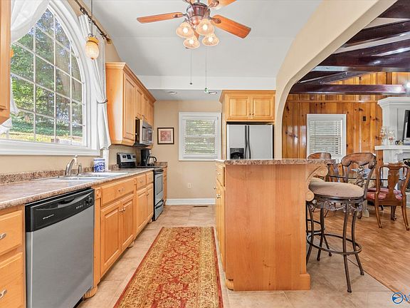 Wheeler Lake, water front with fantastic view of the Tennessee River! 3B/2B home with beautiful pine and exposed beams. Large deck with a gentle slope to the boat slip with boat lift & jet ski lift. Year around water with concrete steps leading from the large deck to the water. Peaceful and serene on a daily basis. Enjoy many days of fishing, boating and water actives form this home full of character.