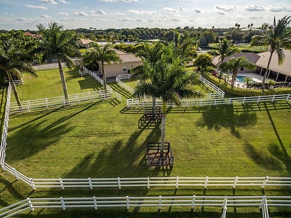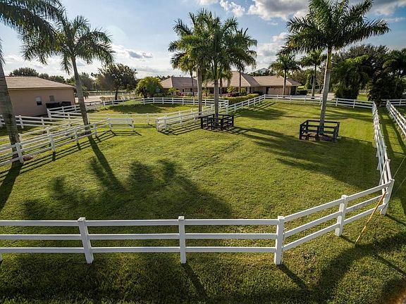 Short hacking distance to WEF and on the horse show side of Greenbriar Blvd., this lovely property has plenty of room for riders, barn mates and staff. The farm is complete with a separate entrance to an 8 stall barn, 3 wash stalls, sand ring, 3 grassy paddocks, and a 2br/1ba barn apartment w/full kitchen. There is also a separate Hay, Feed & Tack room with laundry inside. As you walk into the main house there is an open feeling from the volume ceilings and rear glass impact sliders that lead out to the covered patio and spa/pool deck. The kitchen, bathrooms and laundry room all boast granite countertops and upgrades like custom cabinets and stainless steal appliances in the kitchen. There are amenities like a split bedroom layout, fire place, central vac, cabana bath and outdoor shower.