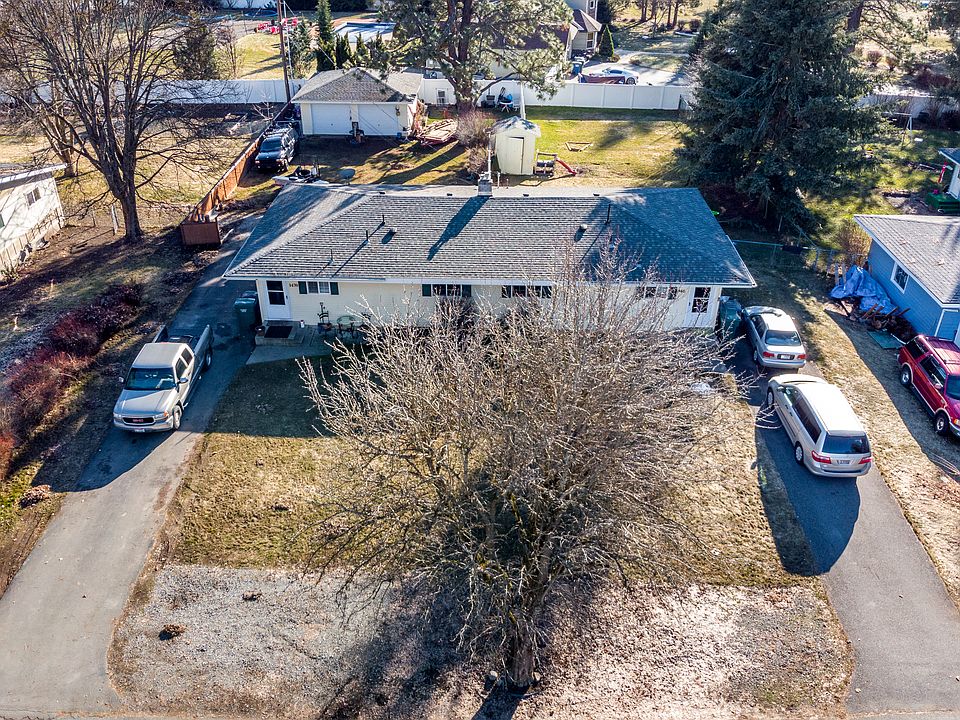 Location! Location! Location! Updated duplex within walking distance to Hayden Lake Country Club, The Porch and the public beach access on Hayden Lake. Rents are low to benefit long term tenants. Each unit has 2 bedrooms up, 2 bedrooms down (one with a closet) and a bathroom on each floor. 2 car garage accompanies one unit, storage shed for the other. There is a large fenced yard and the flooring and electrical has been updated.
