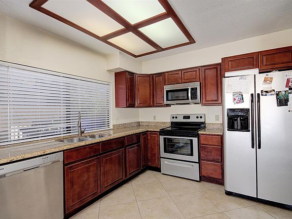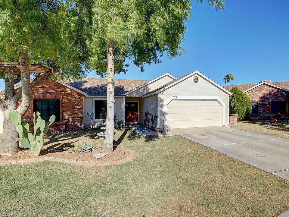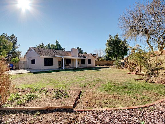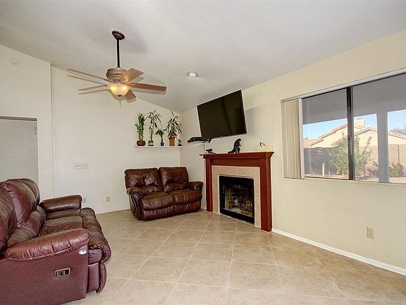 Your home sweet home awaits! Fantastic open floor plan with vaulted ceilings, neutral tile flooring and a cozy fireplace for those chilly desert nights! Upgraded eat in kitchen features high end stainless steel appliances, custom cabinetry and granite counters. Three spacious bedrooms have plush carpeting and picture windows. Master bedroom includes a walk in closet and adjoining bath with dual sink vanity. Generous backyard is complete with a covered patio, green grass, mature trees and desert flora. This home is ready for your personal touches! See it today and make it your own!