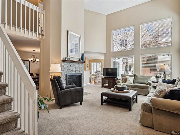 Welcome to your dream home at Woodridge Terrace! This stunning end unit townhome offers two bedrooms, three baths, and an open loft area, ideal for a home office. Over 2800 total square feet. The large, open family room boasts a stacked stone gas fireplace and vaulted ceilings, creating a warm and inviting atmosphere flooding with natural light. Enjoy cooking in the remodeled kitchen featuring a skylight, granite counters, beautiful cabinets, stainless steel appliances and canned lighting. Hardwood flooring flows throughout the space, leading to the dining area perfect for entertaining. Half bath on the main level. Retreat to the large primary bedroom with a vaulted ceiling and five-piece bath and find comfort in the spacious secondary room with its own full bath on the second level. Updated lighting and ceiling fans are found throughout the home. The finished basement offers a bonus room with endless possibilities and enormous storages area, while the spacious back patio with a retractable awning provides the perfect outdoor retreat. Park with ease in the attached two-car garage with tall ceilings for additional storage. Located in a prime spot close to parks, trails, shopping, and restaurants, with easy highway access. Plus, enjoy the amenities of a great clubhouse and pool. Don't miss out on this extraordinary opportunity to call Woodridge Terrace home!
