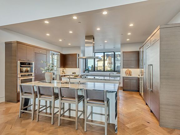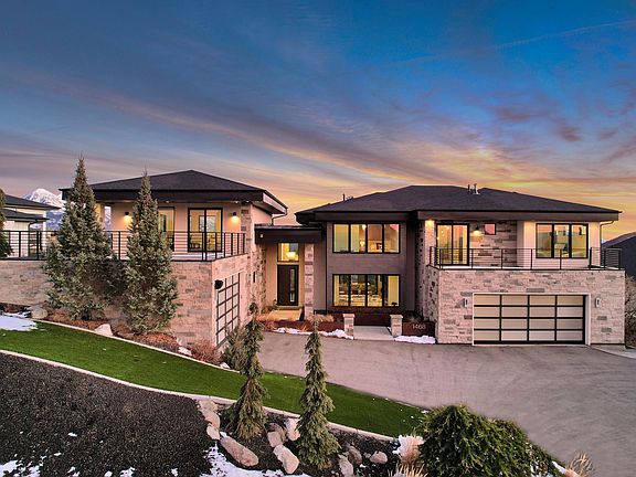 Perched at the top of Suncrest, this modern luxury retreat offers unmatched, unobstructed valley and mountain views from every room. Designed by Ezra Lee, the home blends elevated style with everyday convenience across more than 8,000 sq ft of thoughtfully curated living space. Vaulted ceilings and floor-to-ceiling windows flood the interior with natural light, while the gourmet kitchen features dual islands, double ovens, and an expansive pantry, perfect for both cooking and entertaining. The primary suite is a private sanctuary with an oversized walk-in closet, a spa-like bathroom with a sunken tub, a cozy fireplace, and a private deck with its own fire pit. Additional highlights include well-appointed bedrooms/bathrooms, an upper-level living area ideal for a home gym or game room, expansive decks/patios, a custom bar, a secondary kitchen, a theater room, a home sauna, radiant in-floor heating, a walkout basement, and a four-car oversized garage. Outside, the home features an infinity pool, a full outdoor kitchen with barbecue, two fire pits, illuminated water features, and a putting green, all set against picturesque views. This estate truly has it all in addition to the amazing amenities the Suncrest Community has to offer. Contact us today to schedule a private tour and experience one of the most exceptional properties in one of the market's most scenic neighborhoods.