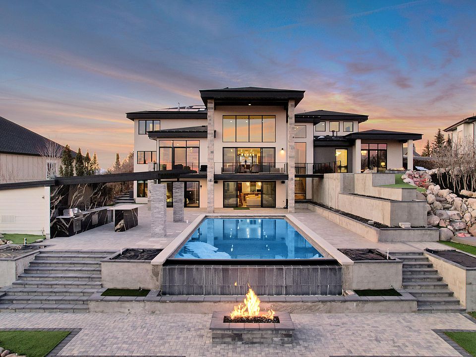 Infinity poolWalkout basementFour-car oversized garageTwo fire pitsPutting greenHome saunaSecondary kitchen