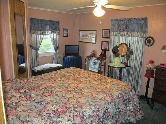 Nice setting with older well kept 2 bedroom Fairmont mobile home with enclosed screened porch and fenced area for the dog. Includes guest house, shed/well house and a very large yard that fronts on two roads.