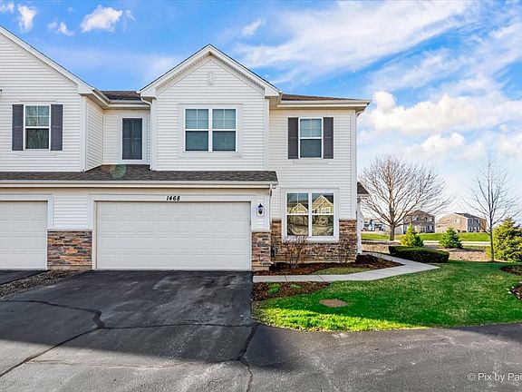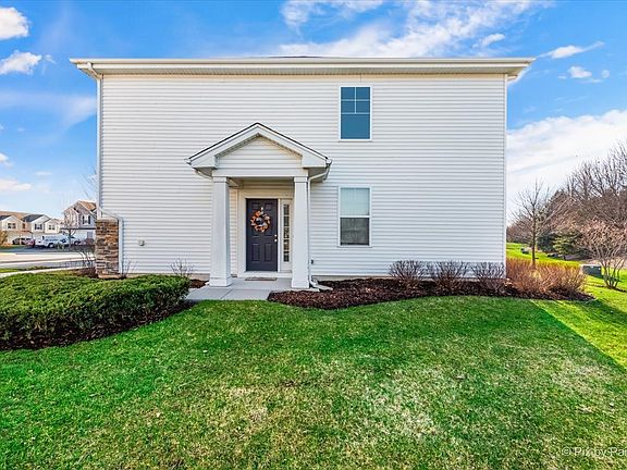 Welcome to this stunning townhome end unit nestled within Cambridge Lakes! As you enter, you'll be greeted by an abundance of natural light streaming through the 2 story entry, and numerous windows throughout the home. This open floor concept home features 3 spacious bedrooms, 2.5 bathrooms, a walk-in closet in the master suite, and a master bath. The first floor den is perfect for a home office or additional living space. You'll love the convenience of the attached 2 car garage with epoxy flooring, making coming and going a breeze. The kitchen boasts stainless steel appliances, and a breakfast bar. Amenities include fitness center, game room, clubhouse, outdoor pool, playgrounds, and a party room. Don't miss out on the opportunity to own this beautiful home in Pingree Grove!