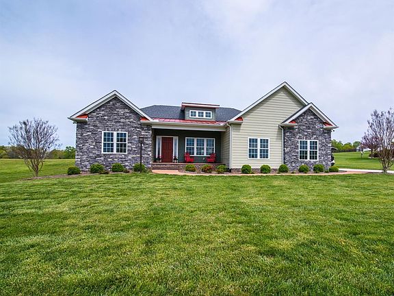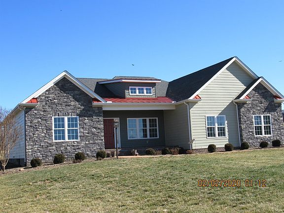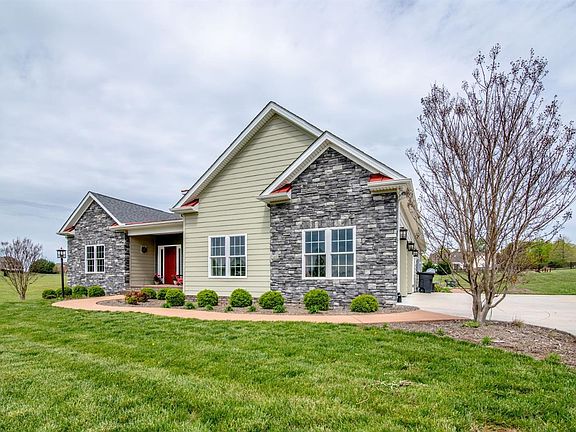 Custon built by VC Design and Build. Large level lot with views. Patios off kitchen and Master Bedroom for quiet evenings. Gather around the firepit and roast marshmallows. Designed for main level living. The great room is highlighted with vaulted ceilings and eyebrow window for extra light flooding the room with sunlight. The two sided floor to ceiling stone gas fireplace is a welcomes chilly nights. The open dining room holds a 10 foot table with built in china closet and tray ceiling. Enjoy the sunroom on the back for those hard to grow plants.The kitchen is a dream. Custom Island with preparation sink and stainless steel appliances with a gas range cooktop make cooking easy. Did I mention the huge walk in pantry? The split bedroom plan provides for 2 bedrooms sharing a jack and jill bath. Additional 1/2 bath and laundry room with folding area complete this area. The master suite is large and private with walk in shower and huge closet. No attention to detail has been spared here.
