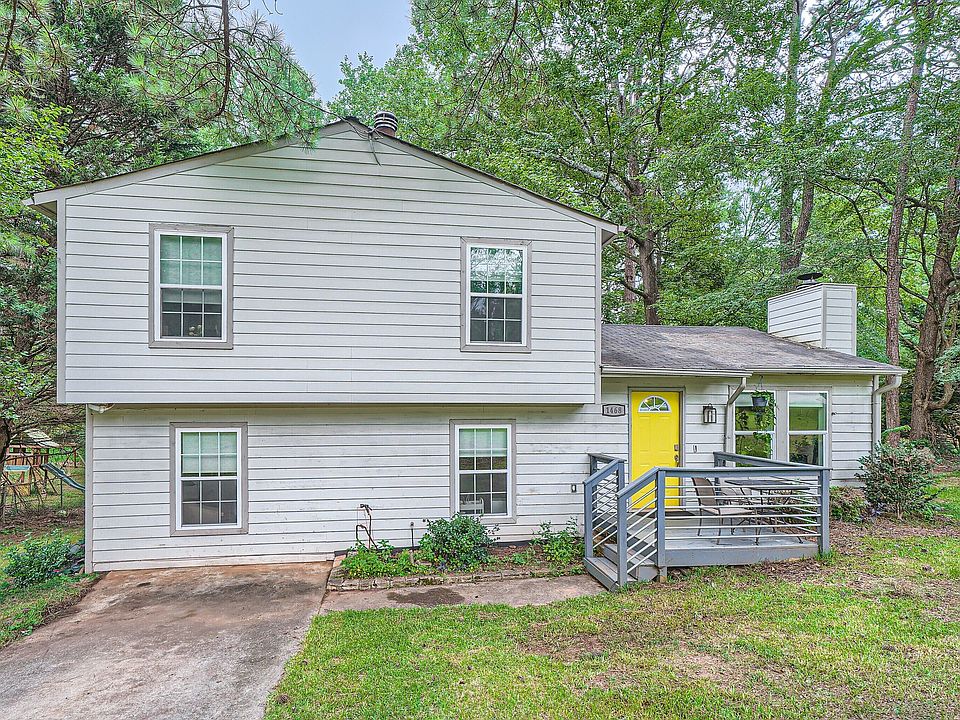 This home features a beautifully updated kitchen, a working stone fireplace, a vaulted ceiling in the main room, 4 bedrooms, two renovated bathrooms, a family room space and more. There is a wonderful flow to the house and great light. All on a large corner lot with a great deck and tons of room to garden or play in the yard. It is in a quiet neighborhood, a quick walk to the elementary school and a reasonable walk to the high school. Close to groceries, highways and more.