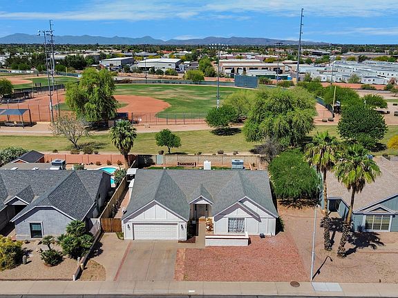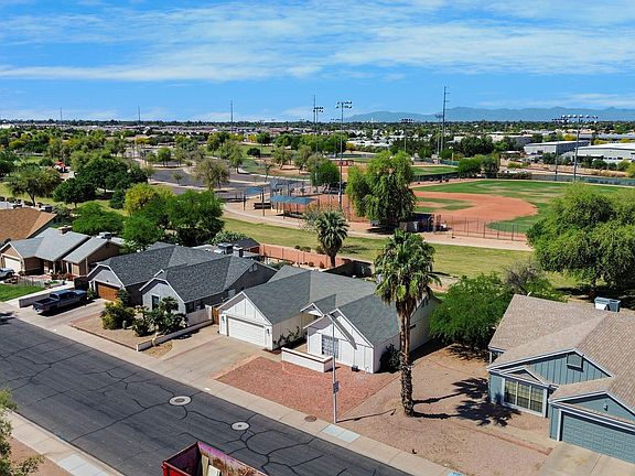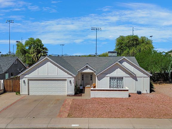 Charming 3 bedroom/2 bath home in an INCREDIBLE location across from a park AND backing a park too. The ultimate in privacy with no neighbors behind plus easy access to recreation all around! Stonegate Park is across the street w/ tons of grass for fun w/ kids & pets, a playground, plus basketball & volleyball courts. You'll appreciate all the extra parking having no homes in front of you provides too when you entertain at your home! A gate in your backyard gives you direct access to Espee Park w/ it's walking trails, splash pad, playground, bike park, & softball fields! Close to downtown Chandler & only a 10 minute drive to charming downtown Gilbert too! The home is light & bright w/ vaulted ceilings. The WONDERFUL open floor plan has great flow for entertaining. You will LOVE that ... it has separate living & family rooms PLUS a formal dining room in addition to the SPACIOUS eat-in kitchen w/ breakfast bar! Refrigerator included. This home has great bones & is ready to live in as-is or remodel to suit your tastes. Neutral color palette throughout. Beautiful archways give architectural interest & charm. Lovely views upon entering the home of the large living room w/ fireplace & mantle flanked by two windows giving views to the backyard. The primary suite is large w/ soaring vaulted ceilings, two closets, & a spacious bathroom w/ lots of vanity space & dual sinks. Two secondary bedrooms - one with newer carpet & the other w/ brand new vinyl wood plank flooring! The solar panels (cost $28K+ & will be PAID OFF at closing with acceptable offer!) will help save you money on electric bills! The electricity costs now average only $120/month. New roof 2019. Water softener. Washer/dryer included! Rare to find RV gate complete w/ a widened paved driveway to pull your narrow trailer, boat, or other toys, etc behind the gate into the backyard! That extra space also gives you room for an extra car to be parked in front without blocking the garage entry. NO HOA either! Tour today & you will want to call this house home.