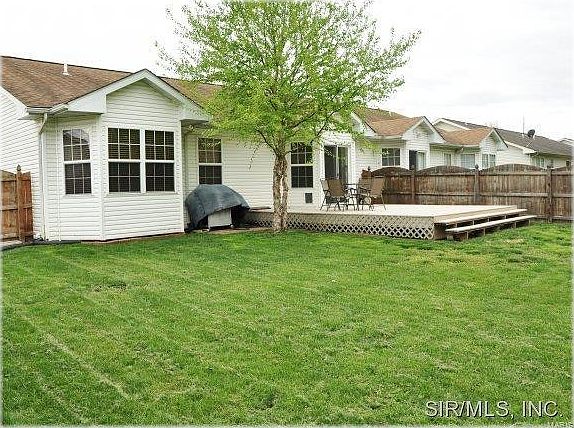 This beautiful and well-maintained villa offers so much for so little. Walk through the front door and you'll immediately notice the care and pride of ownership demonstrated by the seller. The living room has beautiful, trendy Brazilian engineered wood flooring, vaulted ceiling, stunning ceiling fan, wood burning fireplace and more. The formal dining room opens to the living room so it's perfect for entertaining. There's also a large eat-in kitchen with bay window opening to the back yard. The master suite is very large and has a beautiful bay window plus a master bath with dual vanities, shower and a large walk-in closet. The home features a laundry area off of the garage entrance, second bedroom and full bathroom. Outdoors you will find an amazingly huge fenced backyard with maintenance free decking. The home is in a great location, just a short drive to Scott Air Force Base, shopping, dining, interstates and nightlife. The best part, no association fees. Call today!