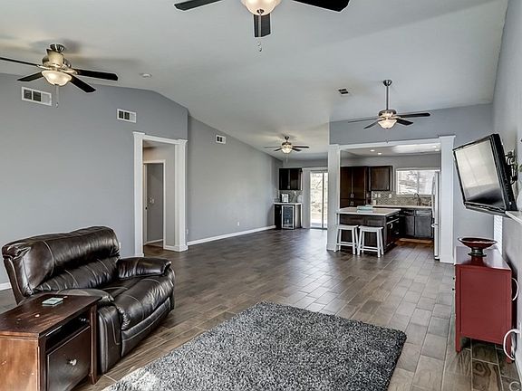 ***BACK ON THE MARKET***Beautiful North Banning single story home. Welcome to this beautifully upgraded 4 bed 2 bath home in one of the most desirable areas of Banning. This wonderful community offers NO Mello-Roos and NO HOA cost to the new owners. Upon entry you will immediately notice the open floor plan and upgrades throughout the home. The large inviting open living room has been completed with wood tile flooring, vaulted ceilings, and 4 ceiling fans. The open floor plan shares space with a dining area and the open kitchen. In the kitchen the counter tops and large center island are upgraded white quartz with a beautiful glass tile back splash. Each of the 3 guest bedrooms are good-sized and the guest bathroom has been remolded to share the finishes of the rest of the house. The large master bedroom feels very spacious with the high vaulted ceilings and the attached master en suite sits next to a walk in closet, the bathroom countertops and dual sinks are finished to that match the rest of the home. Additional features include indoor laundry, 2-car attached garage and large open backyard with concrete patio.
