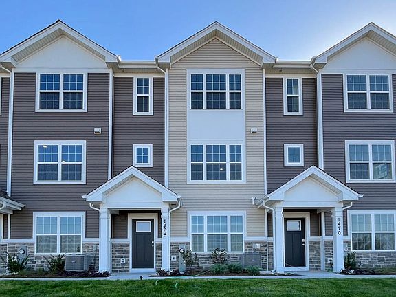 Welcome to 1468 Sequoia Way in Pingree Grove, Illinois, a beautiful new home in our Cambridge Lakes North community. This townhome is ready for a quick move-in! Homesite includes a fully sodded yard that is maintained throughout the year as well as snow removal in the winter. The Monroe plan offers 1,651 square feet of living space with 2 bedrooms, an upstairs loft, 2.5 baths, and finished flex room. As soon as you step inside, you'll be greeted by the finished flex room, which is perfect as a den or playroom. Walking up the stairs, you will find this home's open concept living space. The expansive kitchen overlooks the dining and great room areas, making it the ideal space to entertain. Additionally, your kitchen features designer white cabinetry, a spacious island with quartz countertops, and pantry. Enjoy your private getaway in the primary bedroom with a walk-in closet and connecting en suite bathroom. The rest of the upper level features a laundry room, loft, secondary bedrooms with a full second bath, and linen closet. You'll find luxury vinyl plank flooring and carpeting throughout the main level. You'll also find luxury vinyl plank flooring in the living space, bathrooms, and laundry. Impressive innovative ERV furnace system and tankless water heater round out the amazing features this home has to offer! All Chicago homes include our America's Smart Home Technology, featuring a smart video doorbell, smart Honeywell thermostat, Amazon Echo Pop, smart door lock, Deako smart light switches and more. Photos are of actual home within construction process. Model photos are of similar home, actual home built may vary.