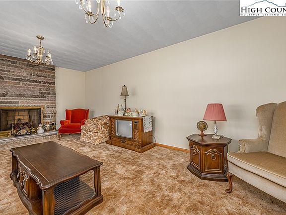 Brick ranch offering one-level living, flat paved access, flat yard, and a full basement with attached two car garage! Such a hard to find combination with easy access only 10 minutes into Boone. Step inside and enjoy the spacious living area accented by a stone, wood-burning fireplace. A second den could make a great office or play room with a full bath and 3 carpeted bedrooms down the hall. On the other side of the home you will find the kitchen and dining area with the pantry area and second full bath between the two car garage and the stairs to the basement. The basement is bone dry and offers ample storage space or could be finished out for additional living space. New plumbing throughout the home. Heat pump and oil furnace for great heat and A/C in the summer. Don't miss this great home with so much potential, come and see today!