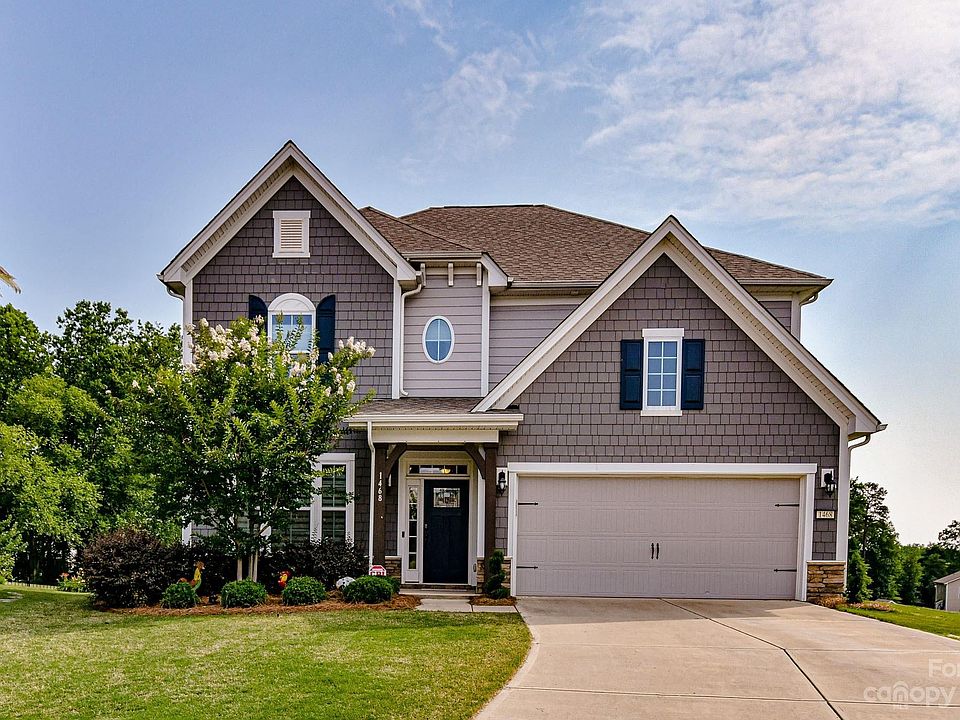 Welcome Home! Be ready to fall in love w/ this awesome 2-story home located in the desired community of The Villages at Skybrook North in Concord. Walk into beautiful hardwood floors throughout main level. Enjoy a large gourmet kitchen with island and open to living room area w/ tons of windows for natural light and peaceful view of the trees in the private backyard. Butler's pantry, formal dining area, guest suite with full bathroom and drop zone complement the 1st level. Walk upstairs to a large open loft, the primary suite with tray ceilings, walk-in closet, double vanity sink and separate tub/shower. Two very spacious secondary bedrooms and laundry conveniently located in the upper level. Backyard boasts some wonderful features, extended paver patio with fire pit and natural seating, black aluminum fence and backs to a wooded area that provides a sense of privacy. Newly installed water filtration system for the whole house. Quick access to 77, 85 and great shopping and dining.