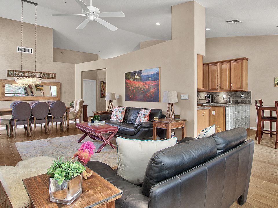 Gorgeous meticulously maintained home in one of Scottsdale's finest locations!! Natural light floods the airy floor plan of this SINGLE LEVEL, 3 bed, 2 bath model with vaulted ceilings and custom finishes. Upgrades throughout done by perfectionist owner to include wood look tile flooring, slab granite counters, and designer cabinets. No detail overlooked with stainless hardware throughout, including door hinges, energy efficient wiring and lighting. Resort style backyard has Pebble Tec pool, deluxe gas BBQ, covered patio and matching tile roof 10x12 shed. The garage contains built-in cabinets and a custom work area equipped with additional power box. Newly painted in 2016, this welcoming home exudes pride of ownership and tender loving care.