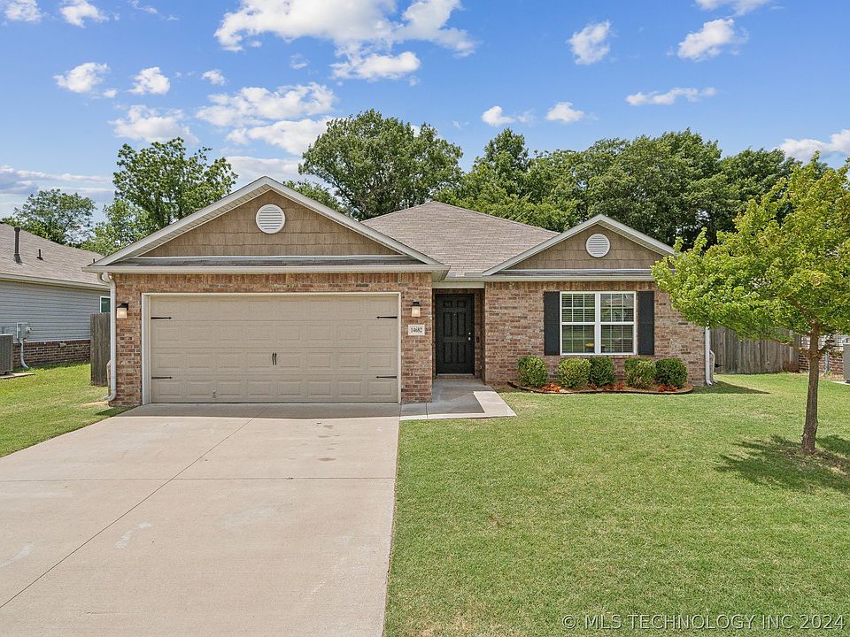 This beautiful home features a highly sought-after open kitchen concept and an over-sized living room with high ceilings. The primary bedroom includes an en-suite bathroom and a large walk-in closet, offering both luxury and convenience. Enjoy the durability and modern look of vinyl plank flooring throughout the home, with cozy carpeting in the bedrooms. The neutral decor is perfect for making the space your own. Step outside to a great backyard with a covered patio, perfect for relaxing and entertaining. The fully fenced yard provides privacy and a serene view of mature trees, greenspace and walking trail. Located in a fantastic neighborhood with sidewalks and a park, this home is ready for you to move in and enjoy!