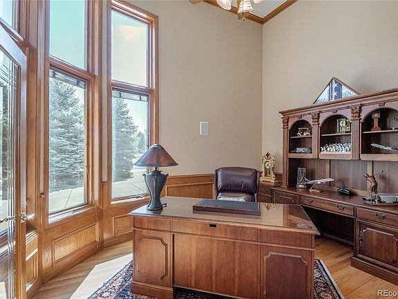 Exquisite designed home awaits You! Expansive Elegant Custom Home with so many amenities for all to enjoy! The 1200+ sq. ft. covered tranquil deck with Peak to Peak Views, Wet bar right off the deck for convenience, double islands, double ovens and plenty of work space in kitchen, and walk in pantry! Main floor office and a desk area in kitchen, 4 beds, 3 bathrooms, walk out unfin. basement for you to personalize! Experience the gourmet kitchen, main floor laundry, generous sized bedrooms, Mature Landscape and room for that outbuilding! This is your masterpiece to make your own. Plenty of Sun, Trees and Views!